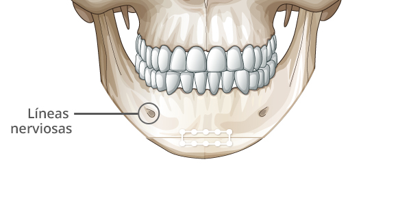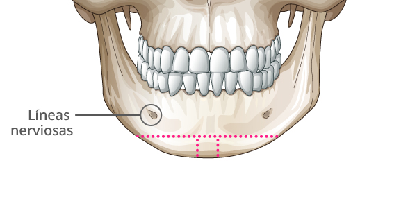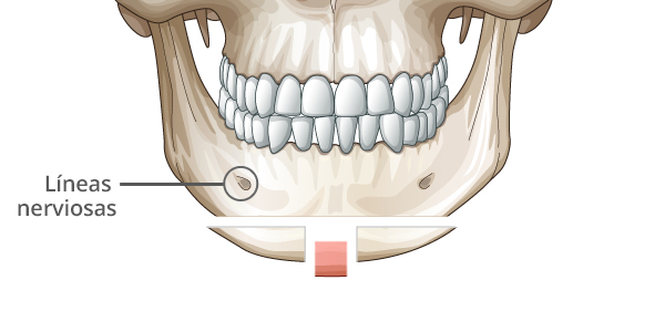 Realizar la osteotomía T en el borde de la mandíbula evitando las líneas nerviosas.